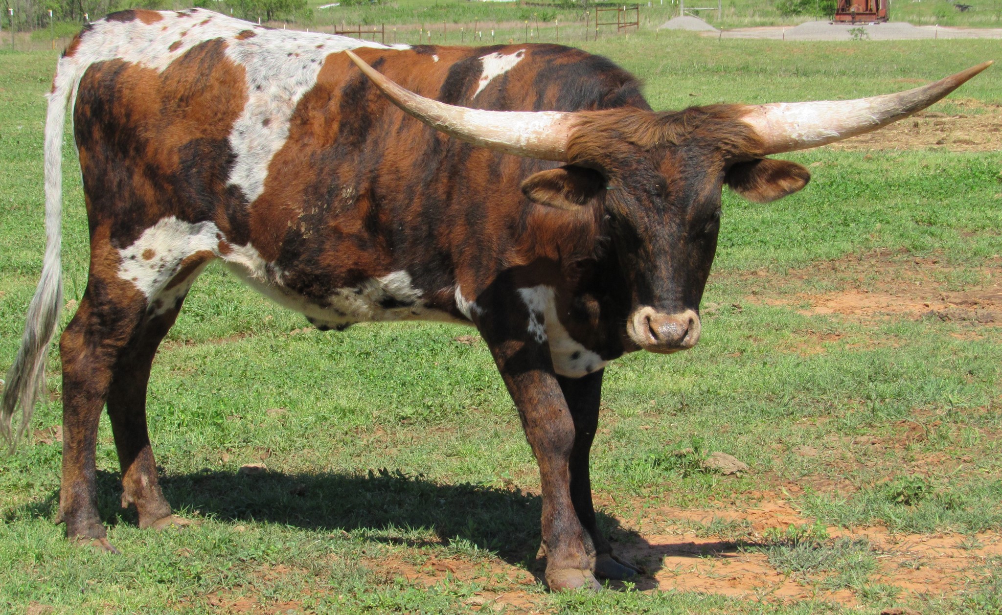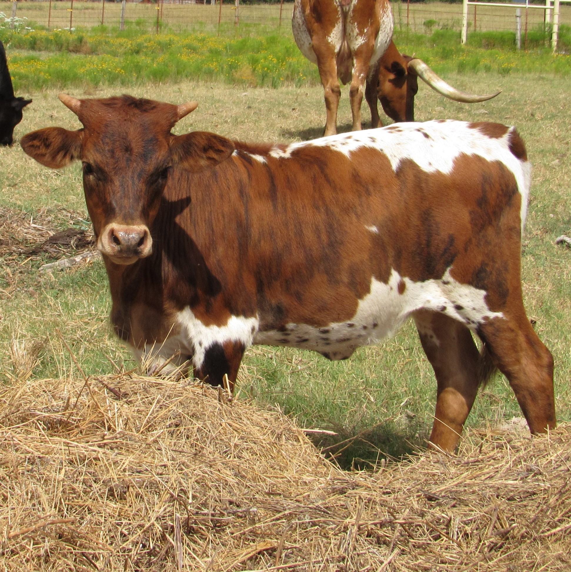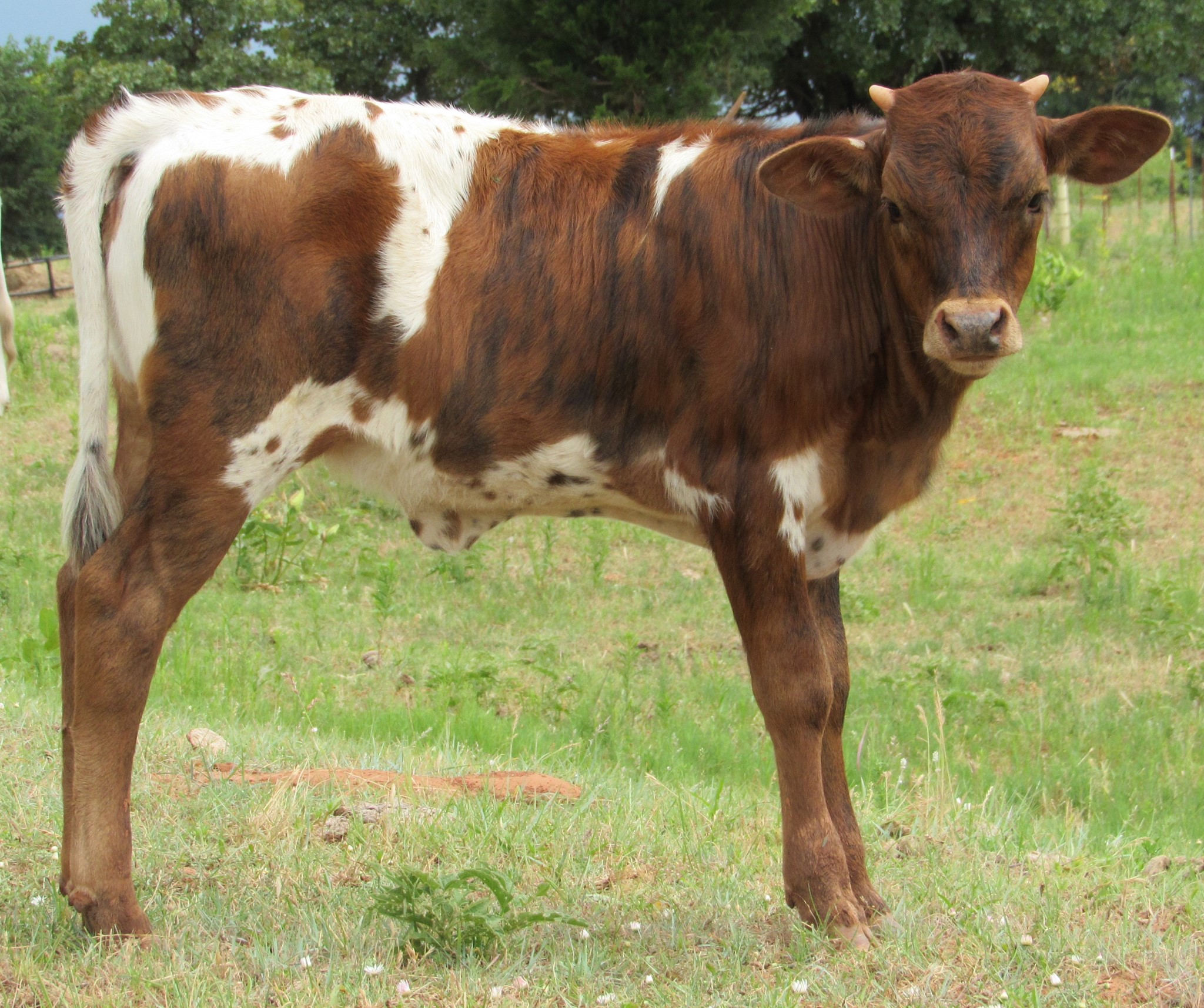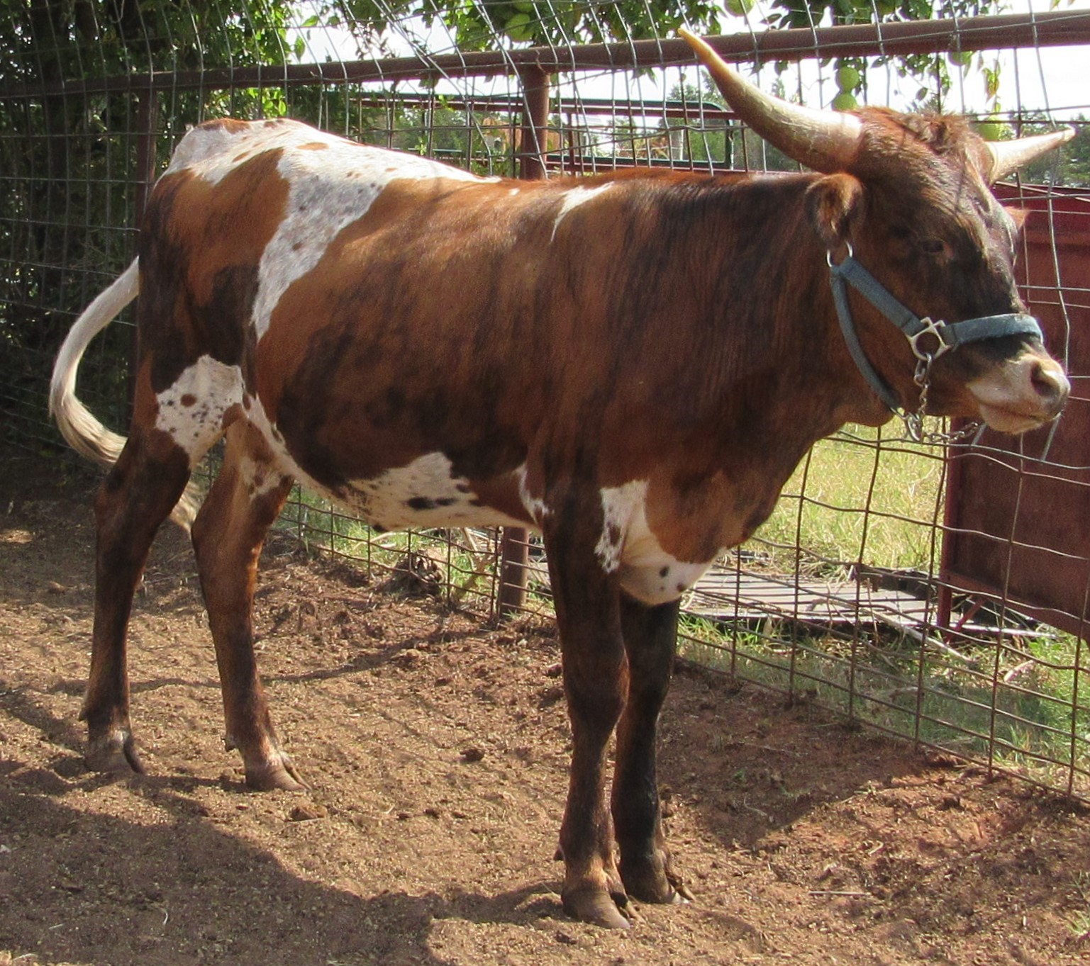20-80"+ TTT animals in this heifer's pedigree. Exceptional pedigree, ready to breed to your bull. Very striking big horned brindle cow. Doesn't like coyotes in her pasture. Deseased.