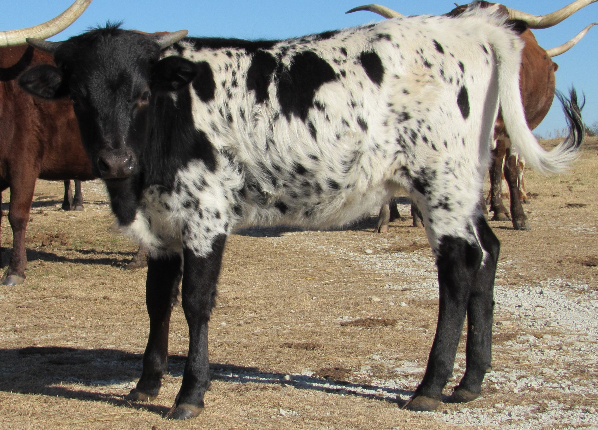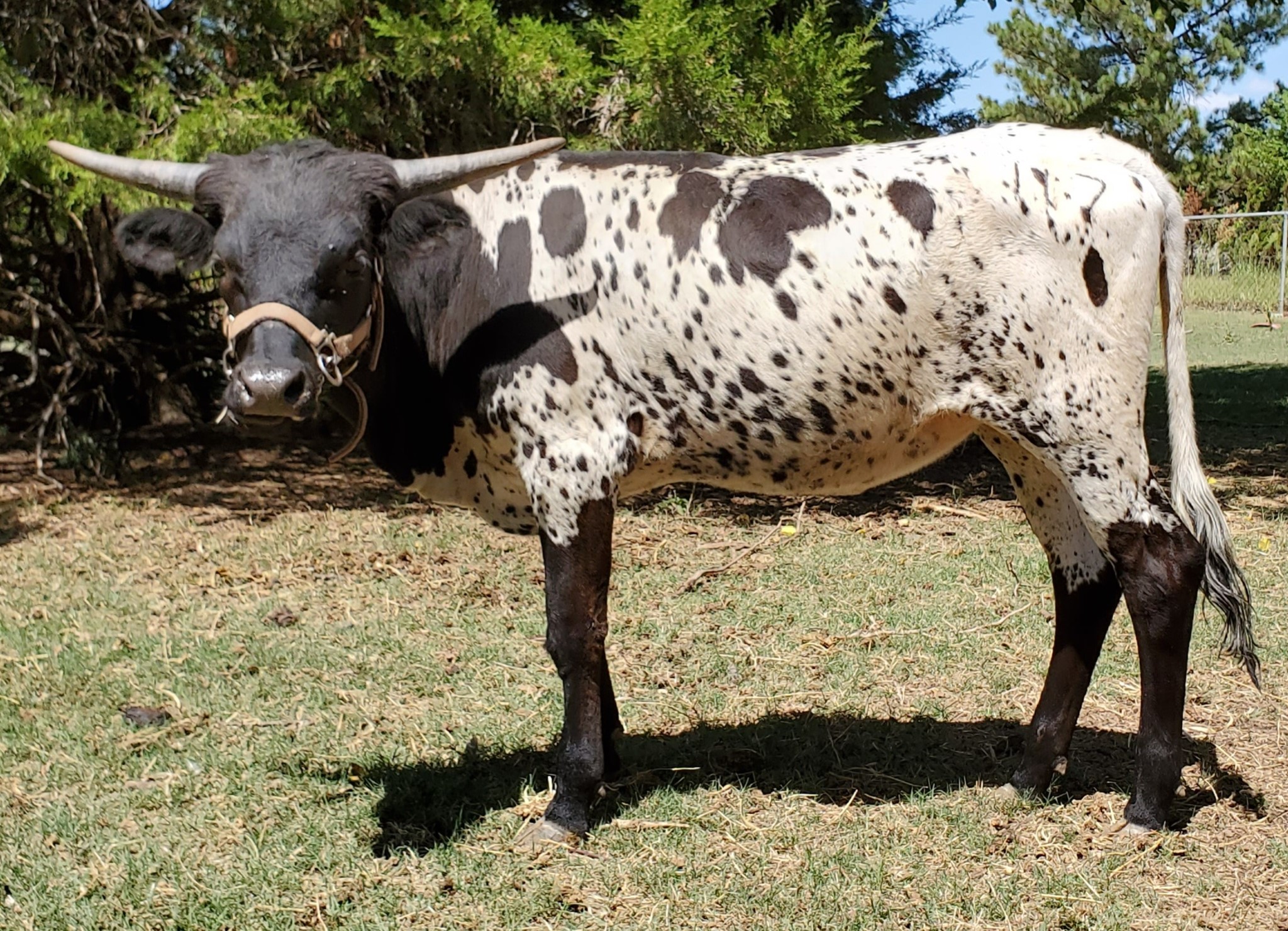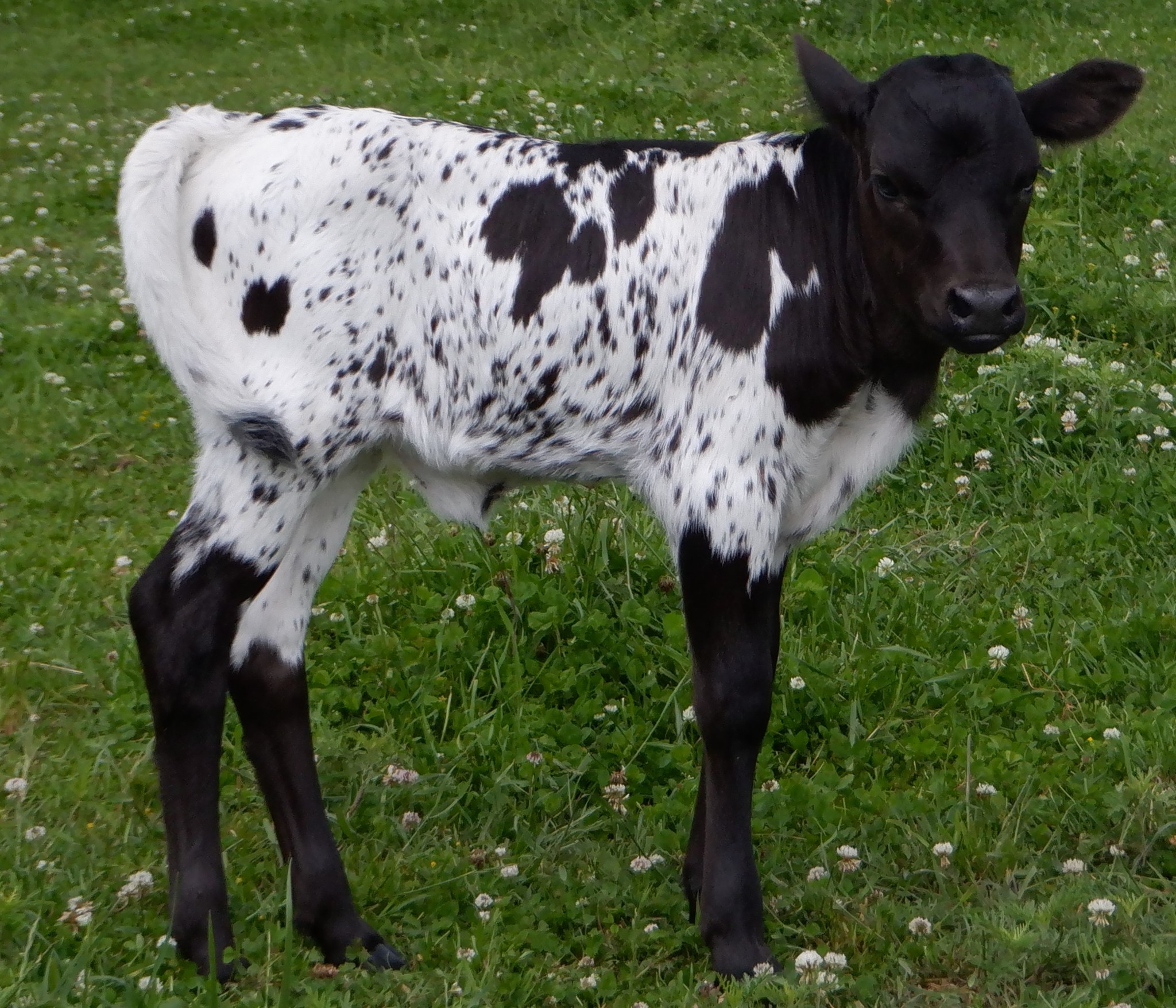 Beautiful Black and White speckled heifer, sired by PCC Run Away Gray. She has 14-80"+ animals in her pedigree. Maternal line traces back to TLH legend Safari B 1677.