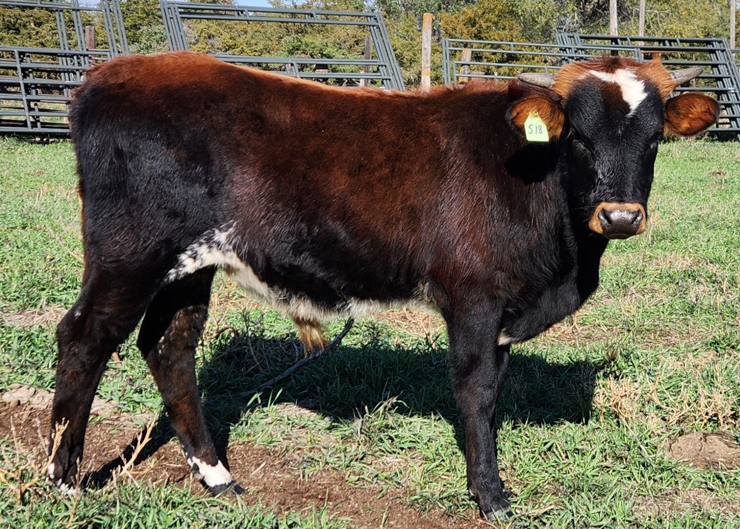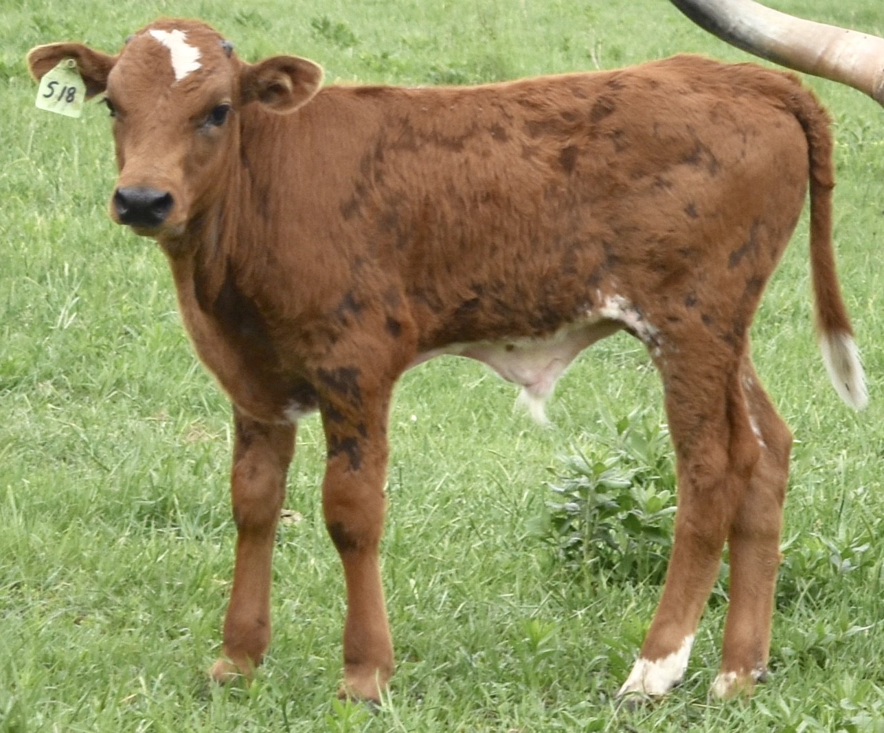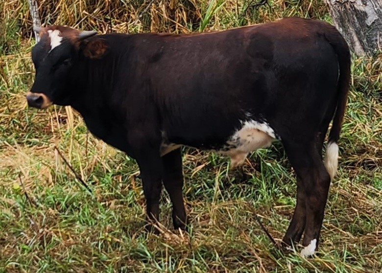This guy was at side of his dam when I purchased her in mid-August 2023. No birth weight recorded, as well as no 105-Day weight. First time I had him on the scale was 10/3/23 at 420lb. Weaned on 11/18/23 with a weight of 480lb, which gives him a 210-day adjusted weight of 446lb. He has a long leg to him and very trim and clean. Genetic has been taken and awaiting results. ~SOLD~