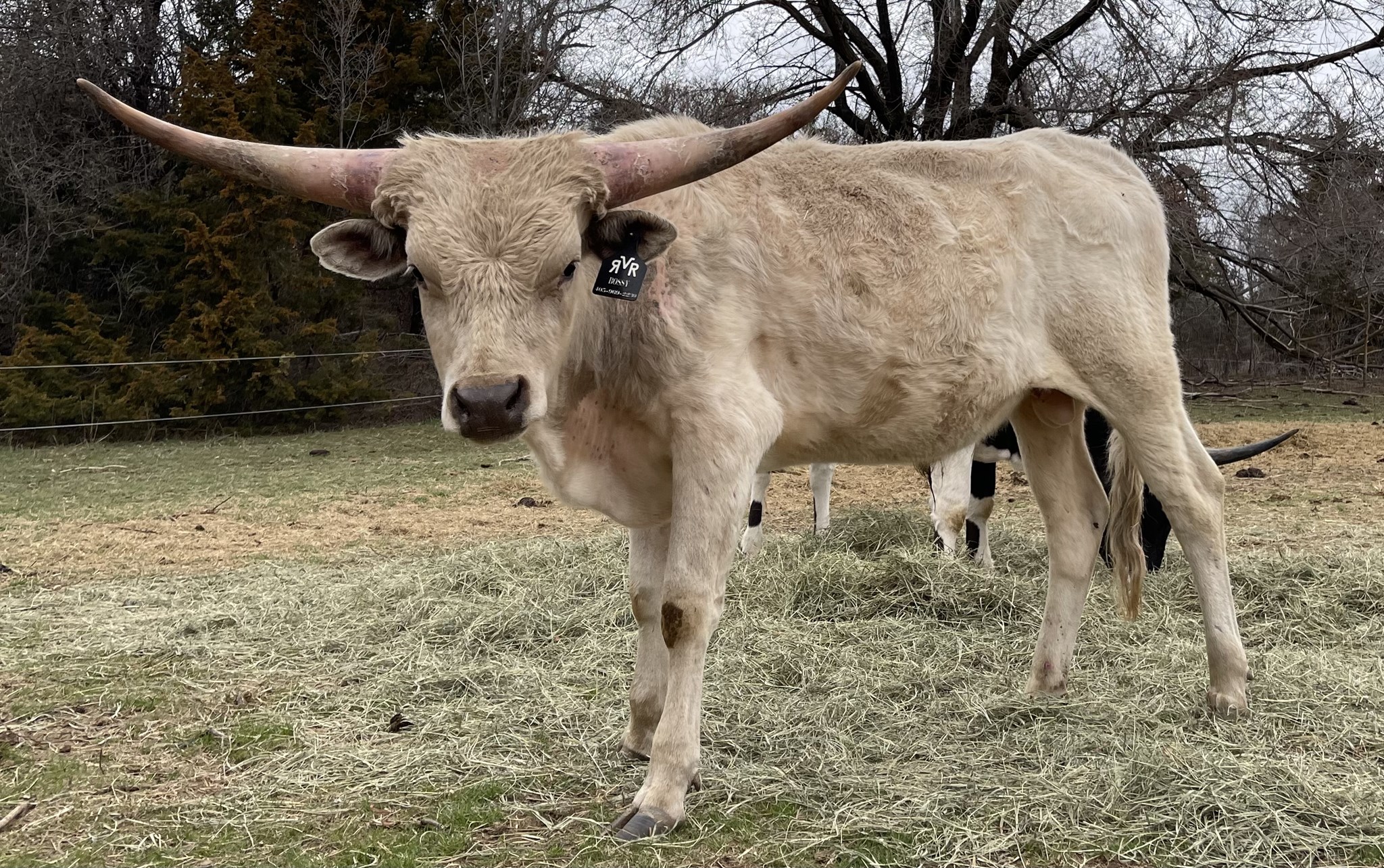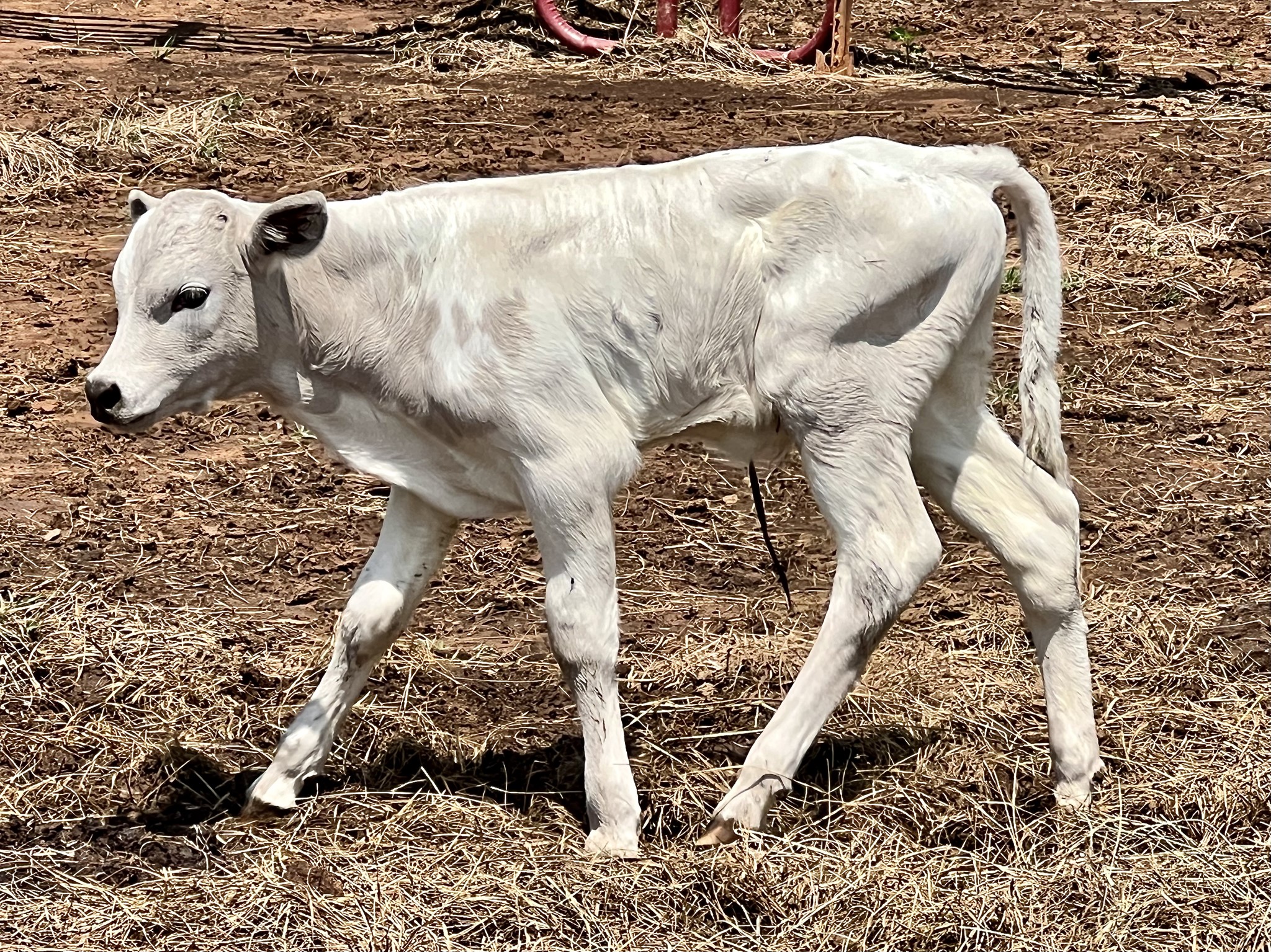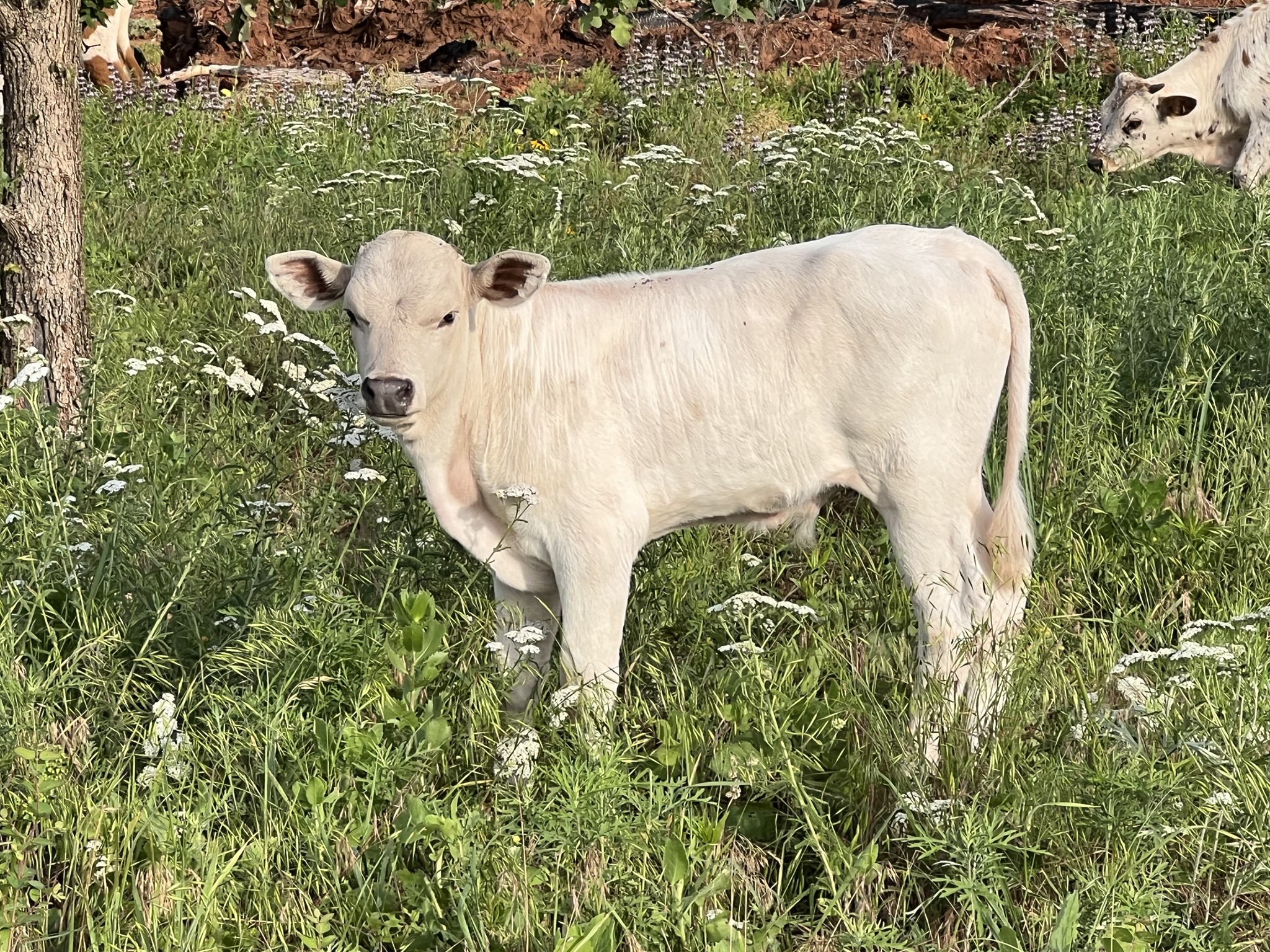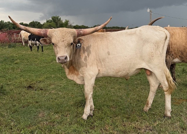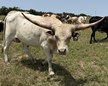 Bossy is a mellow bull with grulla cape and white body. His sire is Run Away Gray and his dam Silver Ballerina goes back to Cowboy Casanova. He's likely to be large like his sire based on his growth rate.