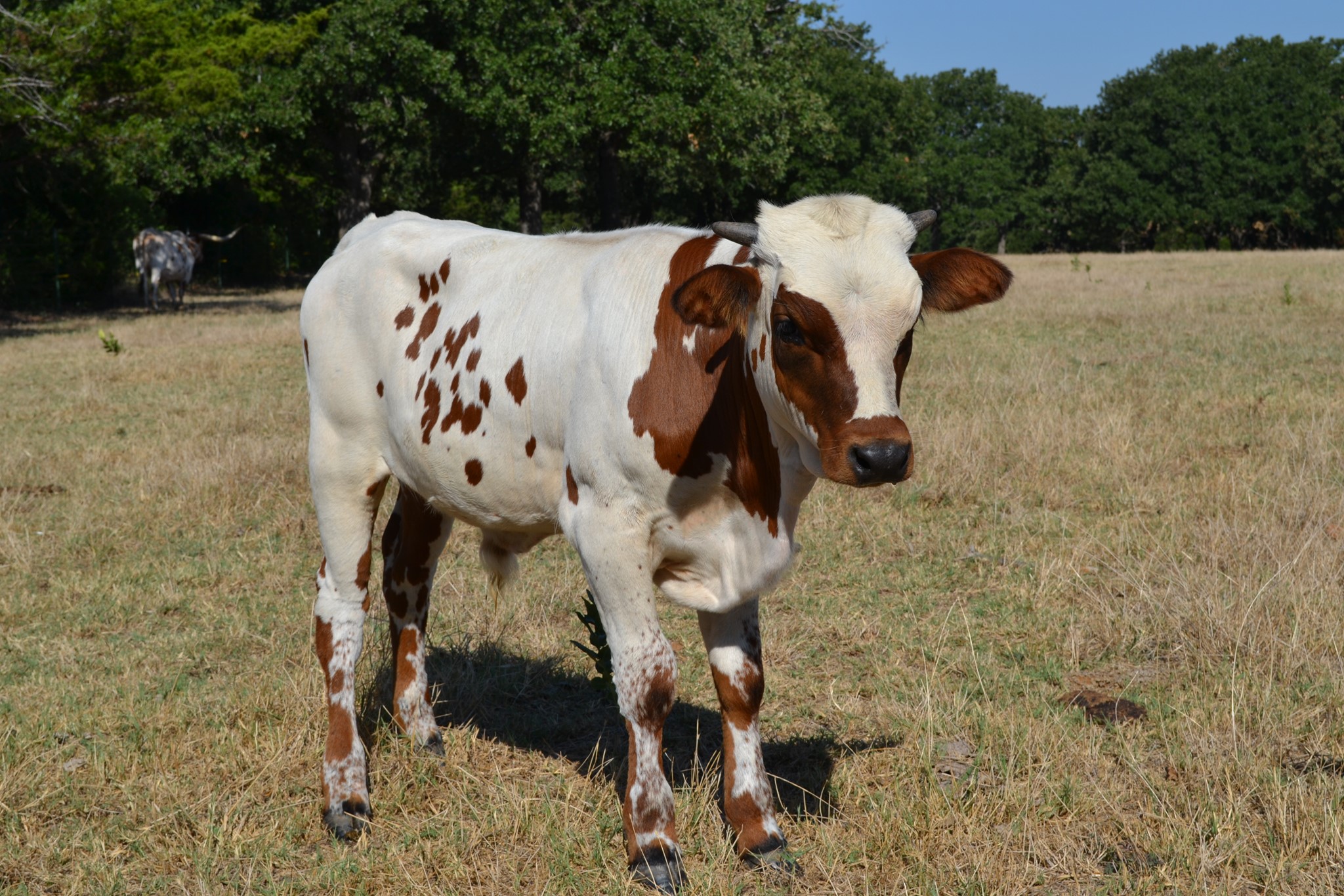 If you like Cactus Jack and Drag Iron genetics-here's your next junior herd sire. Out of the Gilliland breeding program. Solid bull calf with really nice structure. Tremendous genetics featuring Cactus Jack, Drag Iron and Cowboy Tuff Chex on top and bottom. His black horn set is angling back just like you would want them to at this age.