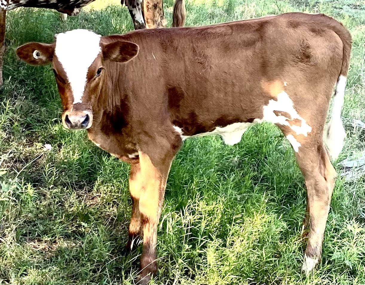 Our girl's outcross sire, Hydro, is one of the greatest color producers in the industry. Boasting a deep wine coat, black nose, black eyelid pigmentation and hooves, all wrapped in a sturdy large frame, Cherry O reflects many traits in her renowned maternal Cherry line. Added bonus: her dam is over 90". .And granddam is over 98" .Cherry O's light horns are growing fast and slanting back....Like mother, like daughter!!