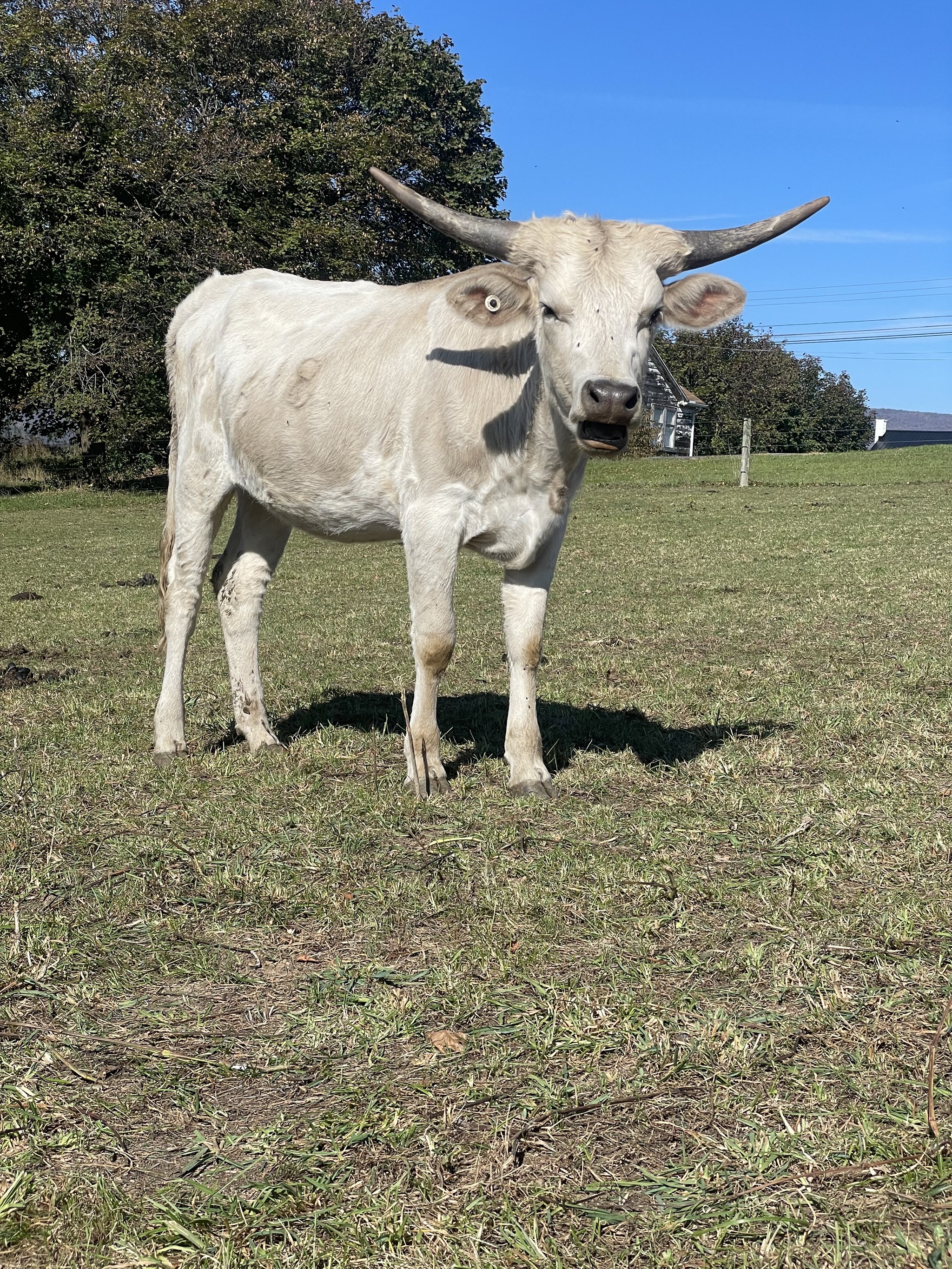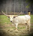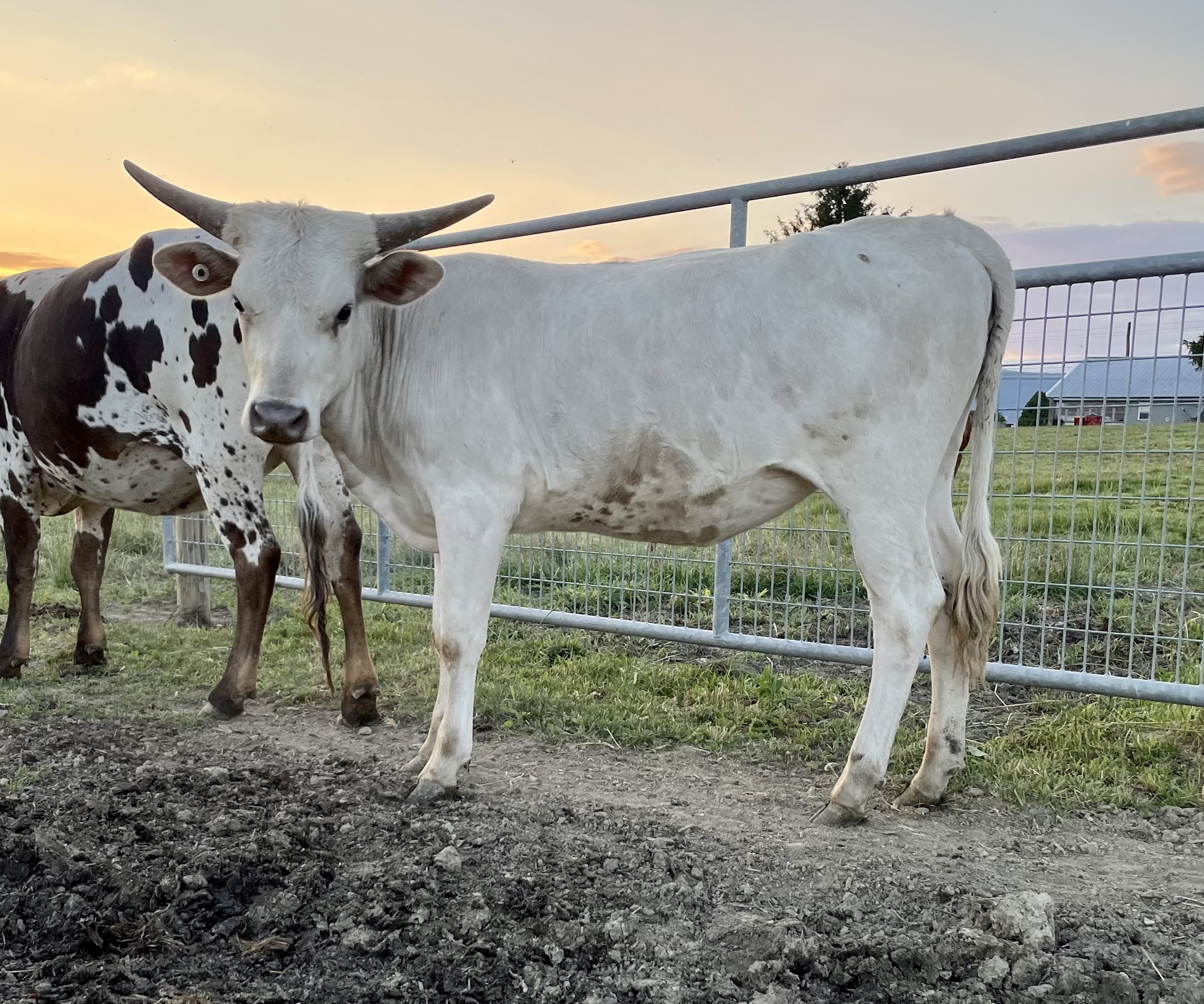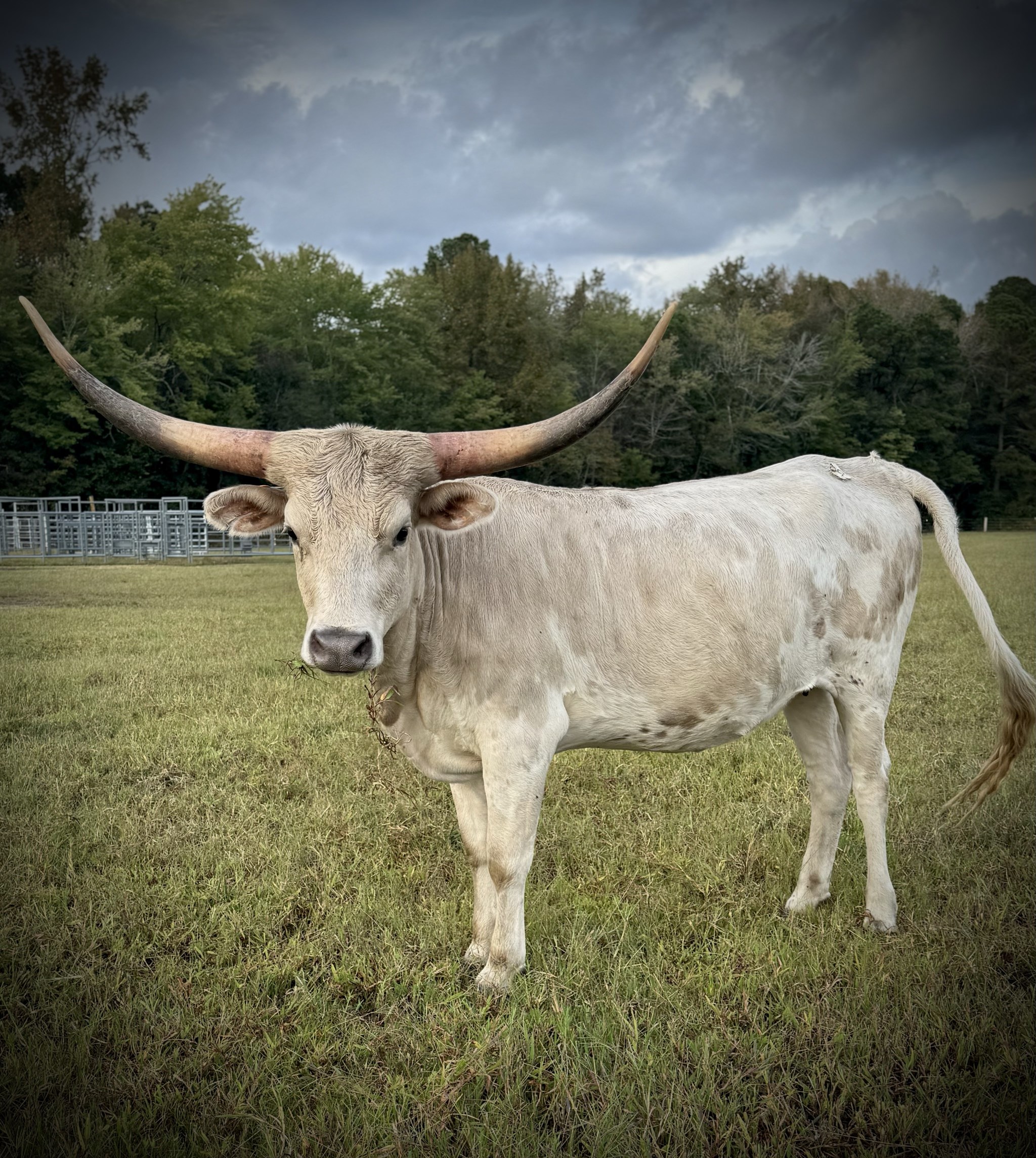 Beautiful grulla girl we acquired from Viking Longhorns. Her color is absolutely stunning! Her temperament makes her a farm favorite. She’s bred to 4C Rio Knight for spring 2026 calf.