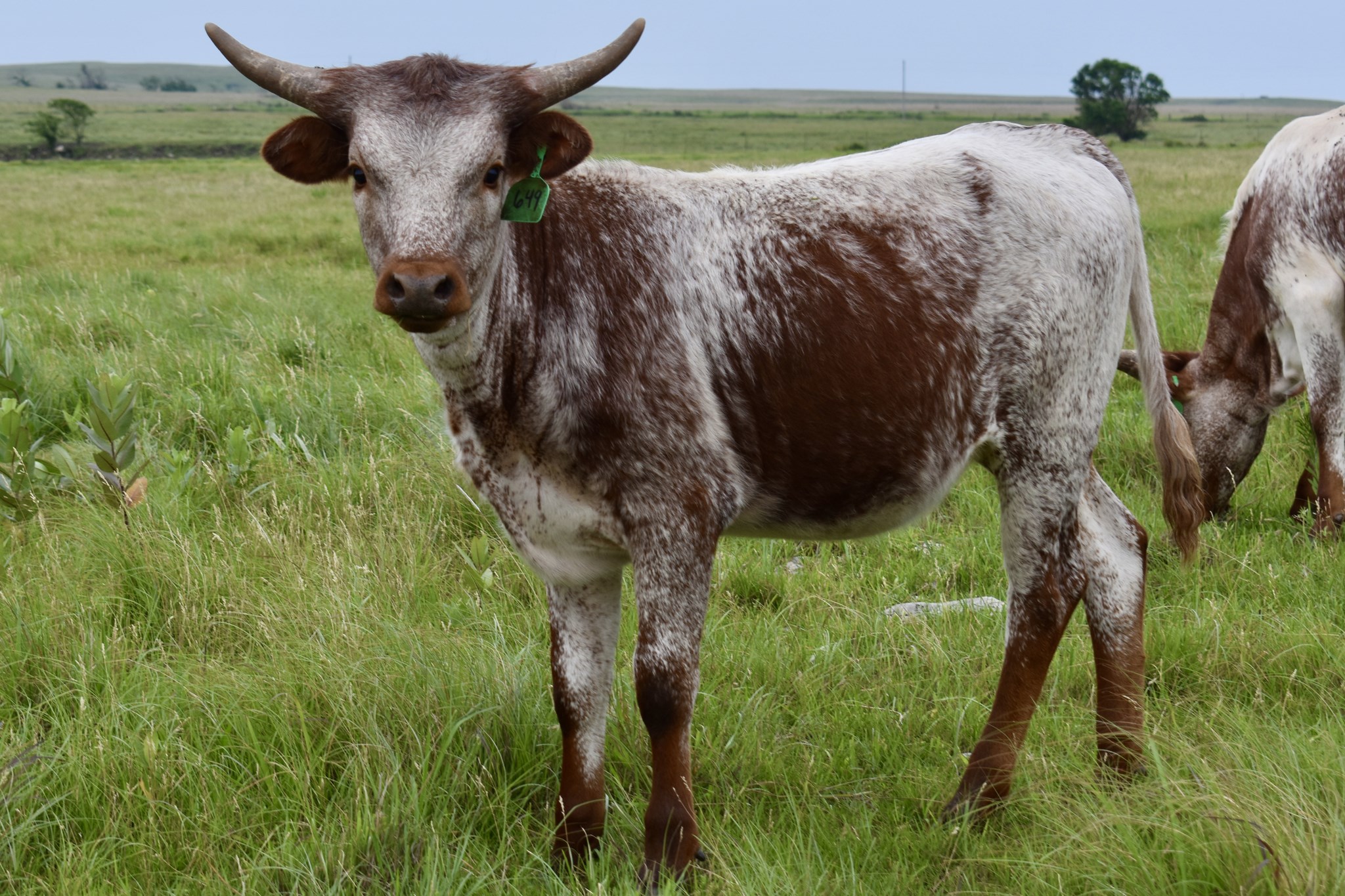 PCC Cactus Jack is the sire to this female. He was special from the day he was born and he has only excelled since then.He has won multiple honors including the highly competitive 2023 Legends Grand Champion Bull and the 2023 and 2024 TLBAA Horn Show Case Ultimate bull. He is docile with a great disposition.He was 86’’ TTT on his 3rd birthday but he enjoys rubbing his tips on the ground and other objects which has limited his TTT henceforth.That doesn’t change the genetics to his offspring which typically have have great TTT horn with very striking color— something which equates to value in this industry. ( Pace/Gilliland/Manning/Loomis)