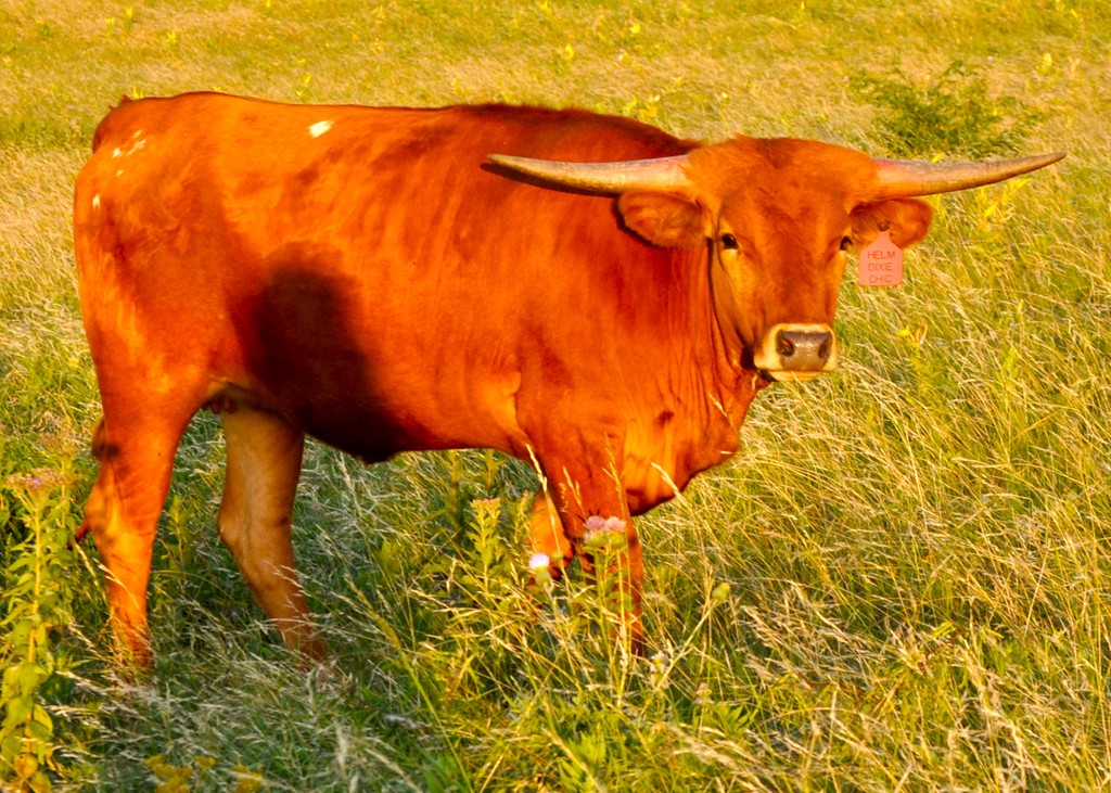 Great Producer bred by the Gentleman Breeder Joe Valentine. This wonderful cow has been a steady producer for us, calving like clock work and she has more than earned her keep for she has brought in more that $50,000 in the sale of her progeny alone over the years. Her beautiful Dam "PC Miss Dixie Classic" was one of the first cows that we ever sold as a cash cow, she brought $11,250 and was sold at the 2011 Midwest Sale to Red McCombs. She goes back to the "Jaynie 698" Cow that has given a ton of Awesome Offspring to Bill Hudson and Joe and Lorinda Valentine. "Dixie Chic's" other high selling offspring is "Helm Dixie Gal" sold for $10,000 at the McCombs Sale; "Helm Dixie Cowgirl" sold at the Legacy for $20,000 plus; "Helm Jayne 611" $$$$$$ private treaty; "Helm Adidas" sold as a herdsire private treaty; "Scattergun" sold as a herdsire private treaty; "Helm Fancy" sold private treaty; "Helm Classic Chic 182" sold private treaty, "Pump Action" sold as a herdsire and others as well. "Dixie Chic" has never had a sick day in her life while giving us a calf every year of her breeding life. She is still a great milker with great udder. She has a wonderful low lateral twisty horn set that measured very near 87" ttt on 4/02/22. Just an all around great cow in every way. In 2022 gave us a very healthy colorful and complete bull by "Brazos Tuff Cowboy 901". In 2023 Dixie Chic gave a a beautiful heifer by “Cherokee HR”. She Keeps on Keepin on !