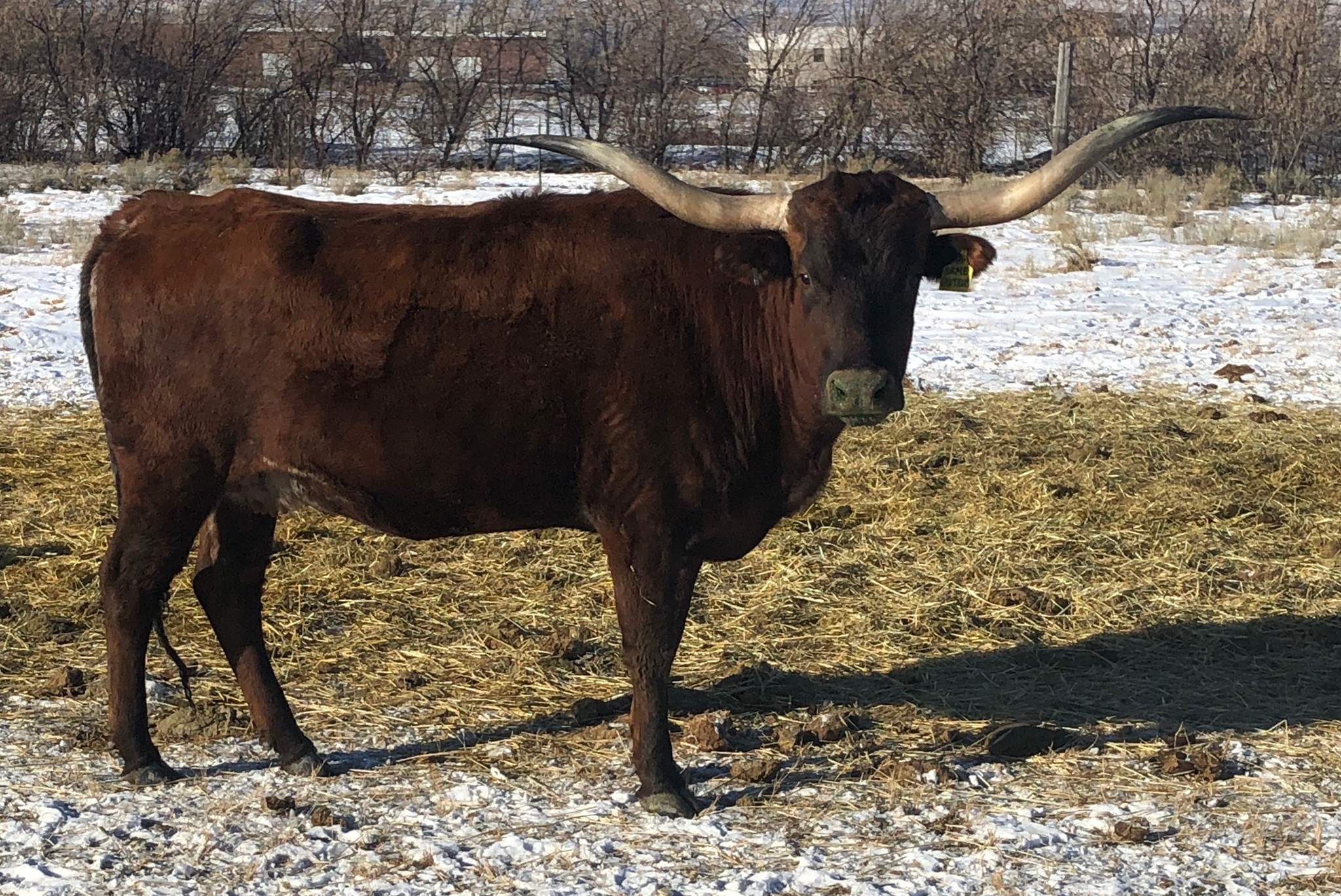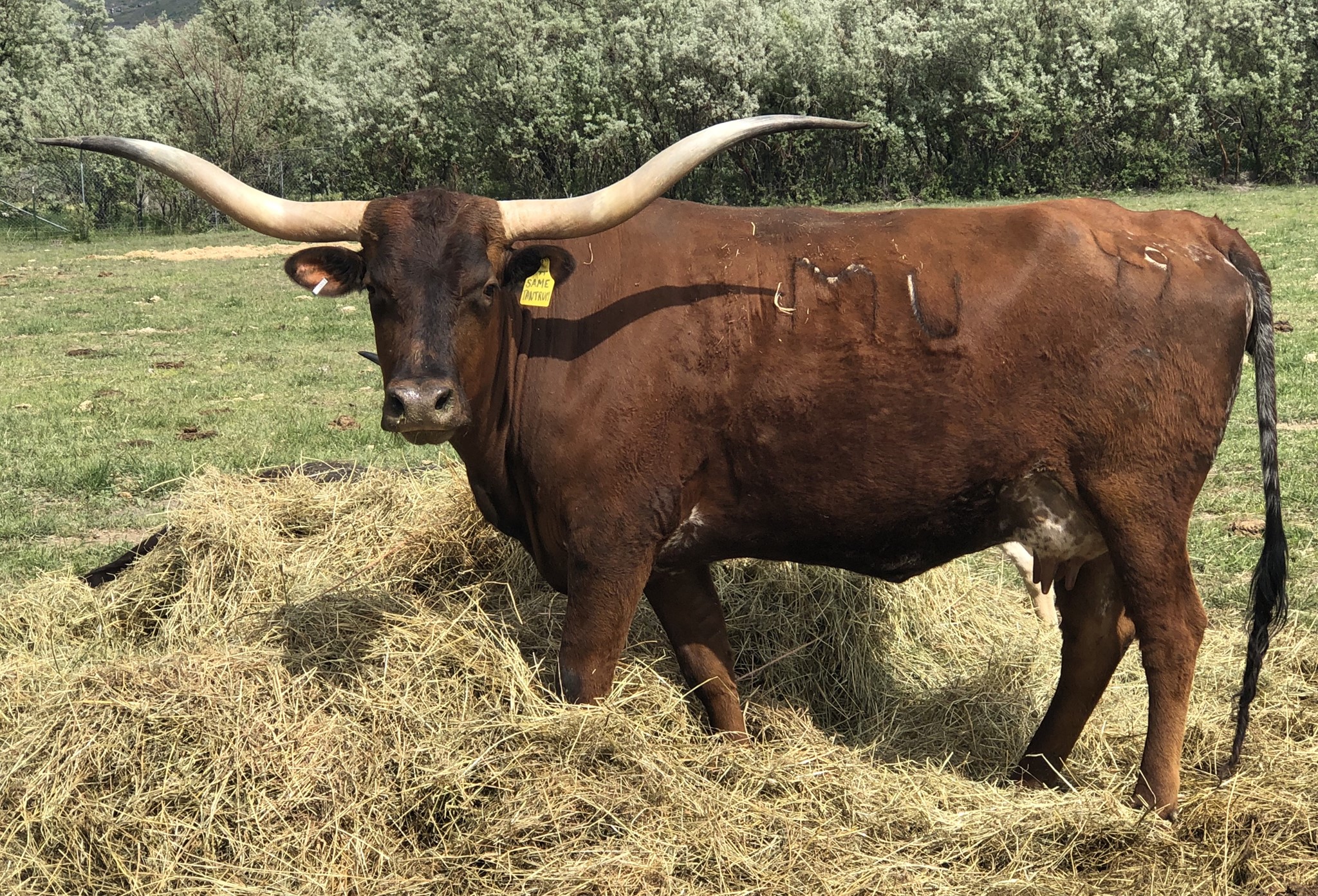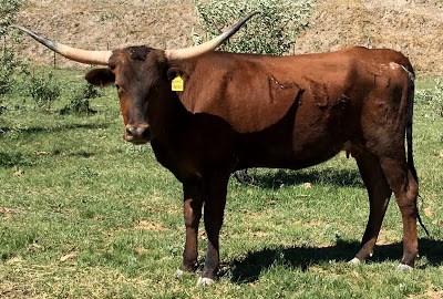 She comes from the outstanding herd of Stockton-Burton. Her horns are really heading backwards. We are excited to cross her genetics into our herd. Heifer calf, PCC Clementine (11-19-15) by Clear Cut.