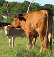 Solid red young cow with a fantastic pedigree! PCC Run Away Gray bullcalf (5/19/19) at side. Made open to breed to the bull of your choice.