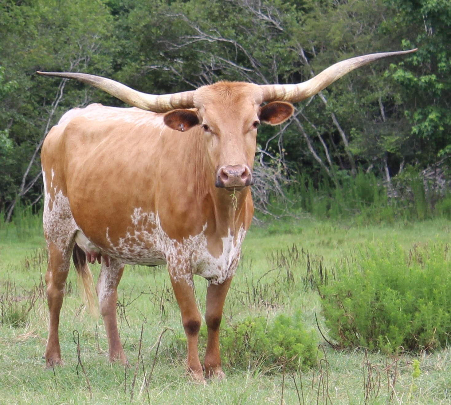 Twisty horn at it's best, along with strong pedigree. This cow always outproduces herself!