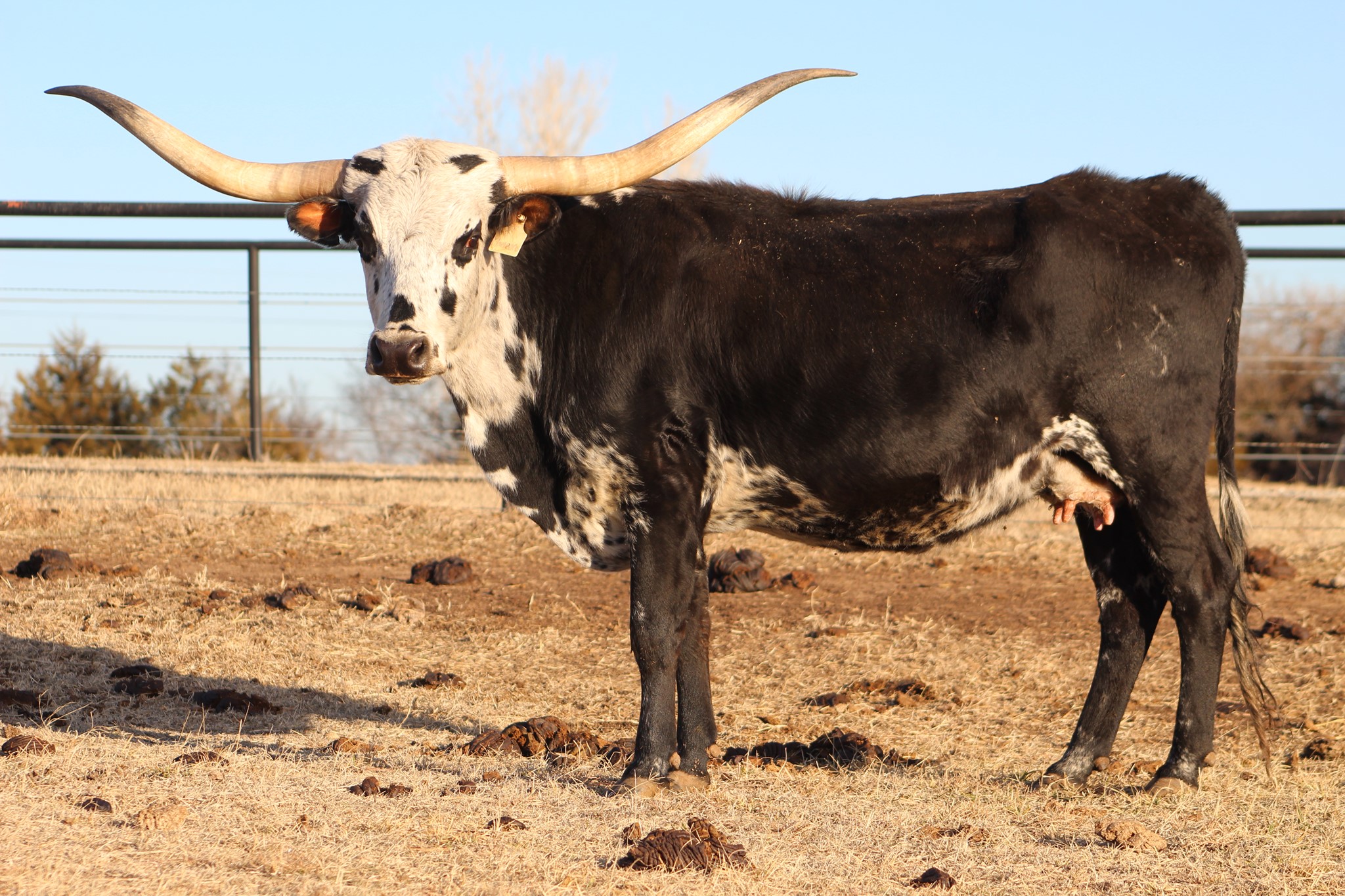 Tried and true breeding from the Harrells. Flamenco will throw the most beautiful calves with good TTT. Her 2018 calf by Rebel HR is just shy of 60 inches TTT at 24 months. Her 2019 calf by Patriot HR (a Rebel son) was 33.75 inches TTT at 16 months. Flamenco's calves are colored up and thick bodied just like their mother. Flamenco is bred to Rocket Man 10 for a fall 2024 calf. We have retained two of her sons, a grandson, and a daughter. Wonderful producer who always throws flashy calves.